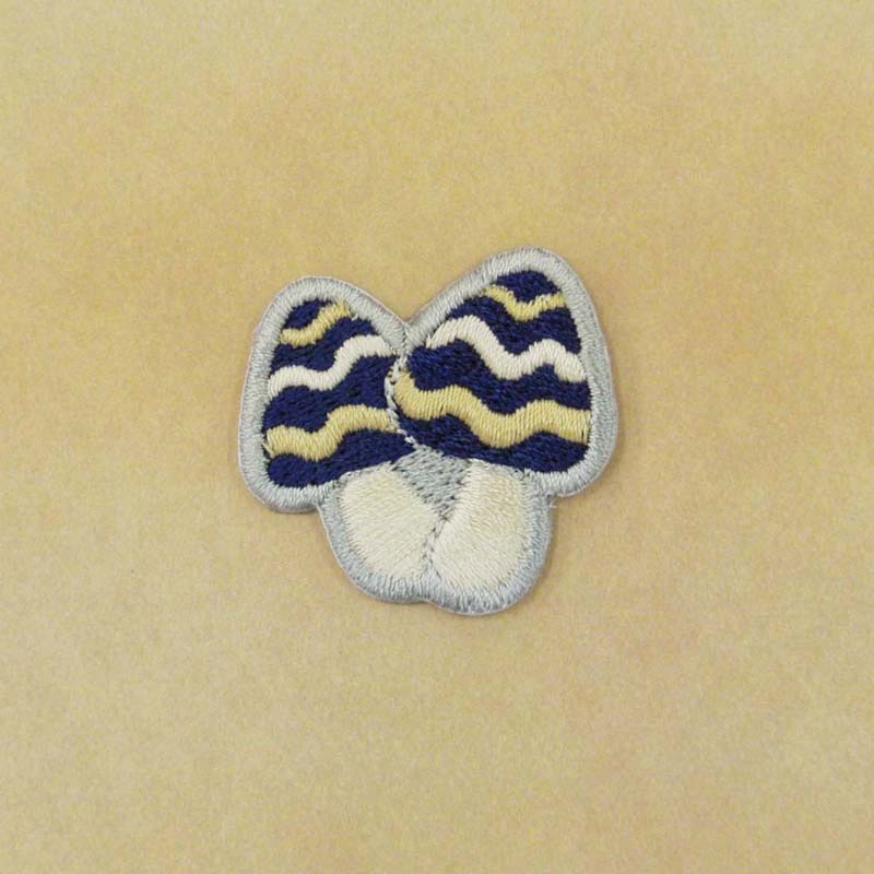 刺繍ステッカーワッペン きのこ(15)ウェーブ ロイヤルブルー