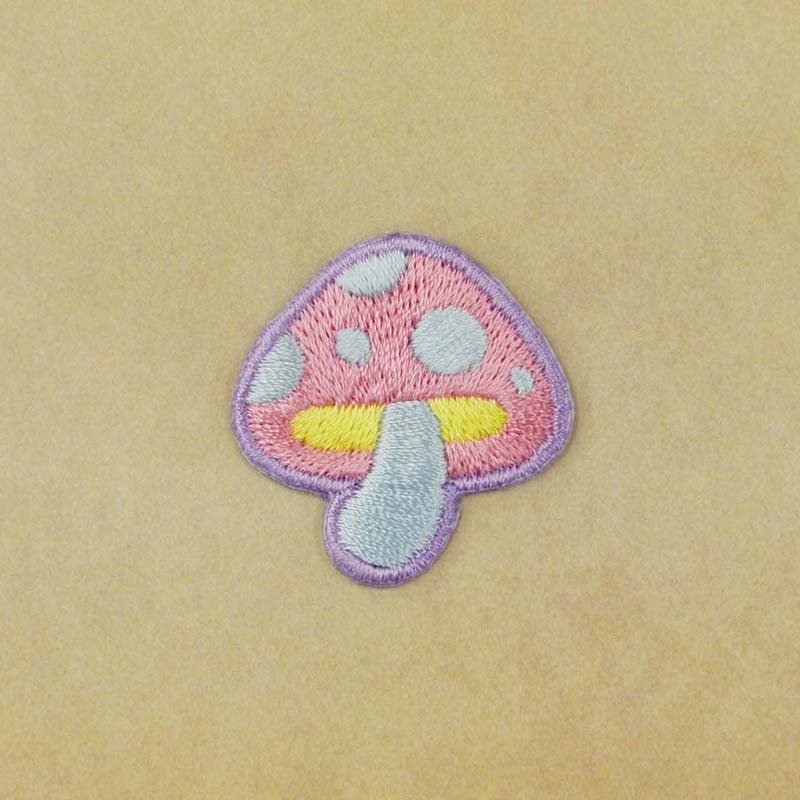 刺繍ステッカーワッペン きのこ(19)ドット ゆめかわピンク